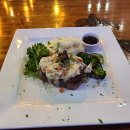 Coming from out of town and just using yelp to find a steak house I was worried. The parking lot was not so full. Walked and was greeted promptly. Waiter was friendly and helpful on the menu. Went with the 14 oz new York and my wife had the filet. This was one of the best steaks I've ever had. The flavor and tenderness of the meat was amazing. The double baked mashed potatoes were also another plus! This place is just amazing. Hats off the the chef.